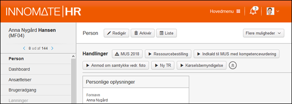 Spørg den ansvarlige for INNOMATE HR på din arbejdsplads, hvis du er i tvivl om, hvor du finder de handlingsknapper, du skal bruge.