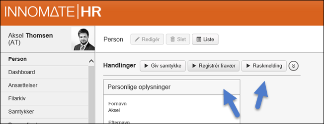 INNOMATE HR’s løsning er designet til at medarbejderen selv registrerer første fraværsdag og igen registrerer ophøret af fravær. Alternativt kan registreringen også fortages af en anden bemyndiget person.