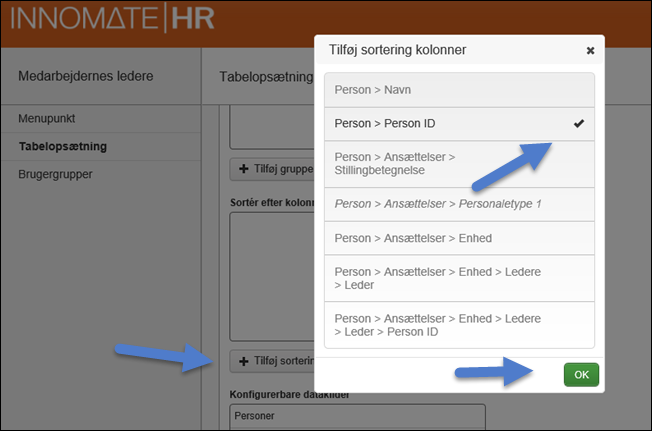 Her vælger vi at sorterer på PersonID.