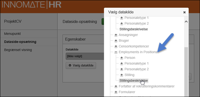Der kan være flere muligheder for at vælge en stillingsbeskrivelse ved valg af datakilde: