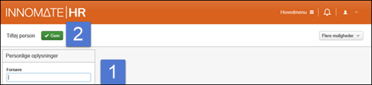 - Vælg Personer, alle og klik på den grønne knap +Ny (øverst på siden) for at oprette personen.