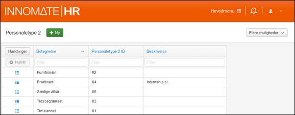 - Vælg personaletype 1 - ud fra liste over personaletyper.